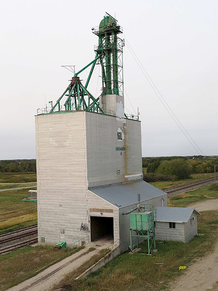 A wooden grain elevator at Solsgirth, on the CPR Bredenbury Subdivision in the Municipality of Prairie View, was built in 1961 by National Grain. Sold to Cargill Grain in 1975, the elevator and its two annexes were destroyed by fire on 16 December 1981, shortly after undergoing an extensive renovation. It was replaced by a new composite-style elevator constructed in mid-1982. Traded to Manitoba Pool Elevators in June 1995, it was closed by Agricore United in 2002. Sold in 2005, the elevator is now used for private grain storage.
