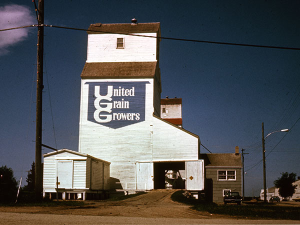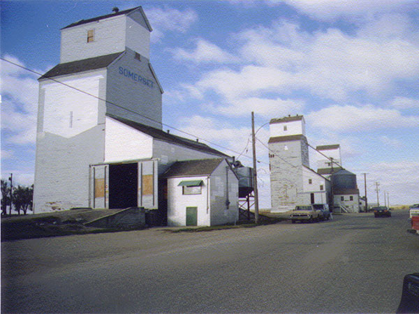 A wooden grain elevator in Somerset, in what is now the Municipality of Lorne, was operated on the CNR Carman Subdivision by United Grain Growers.