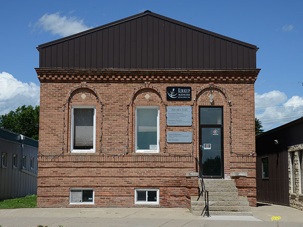 This small brick building on Crescent Avenue West in Souris was designed by architect Alexander D. Melville and erected in 1928 by the Malcom Construction Company of Winnipeg, at a cost of $11,000, for the Manitoba Telephone System. The 28 by 43 foot building was in use as an insurance office at the time of a 2020 site visit.