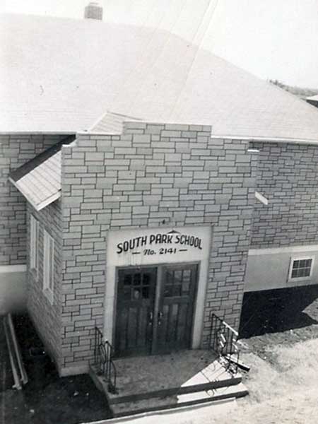 The South Park School District was established in October 1925 and a one-room schoolhouse operated in the village of Blumenort South (Lot 26, S3-1-2W) in what is now the Municipality of Rhineland. In 1968, the district joined the Gretna Consolidated School District and later became part of the Rhineland School Division. The school was moved to Gretna to provide additional classroom space there. It was dismantled when new classrooms were built. The South Park schoolyard was sold to become part of the neighbouring property.