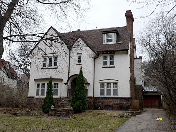 This two-storey house on Middle Gate in the Armstrong’s Point area of Winnipeg was designed by architect Henry Rupert Linnell and constructed by Claydon Brothers between 1912 and 1913 for baker John Tully Speirs. The building was converted into a triplex in 1961.