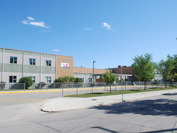 Located in the North Kildonan area of Winnipeg, this school was built in 1960 for the North Kildonan School District in the new one-thousand dwelling Springfield Heights residential development. It was based on designs of the Winnipeg-based firm of Ward and Macdonald and opened to staff and students on 6 September 1960. The original 16-room configuration is the south half of the present configuration. Within two months of opening, district voters approved a $435,000 school building program. Most of these funds went to doubling the school’s capacity via a 16-room and auditorium expansion. Expanded in 1961, on the north side of the facility, designs were again provided by Ward and Macdonald.
