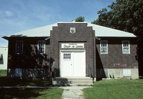 Starbuck High School, located immediately east of the Consolidated School building, later used for lower grades and as a senior centre, demolished in April 1996 (1968)
