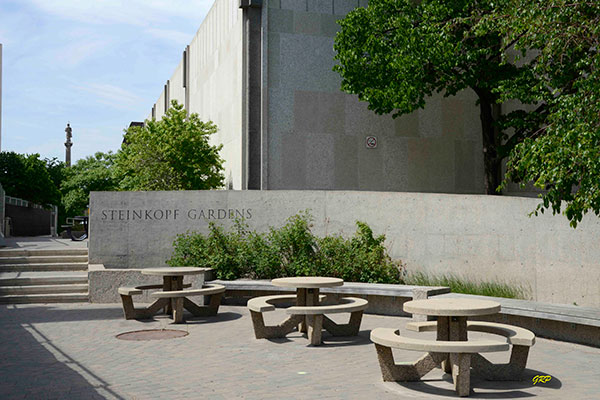 Running in line with James Avenue in Winnipeg, the Steinkopf Gardens lies in the middle of the Manitoba Centennial Centre as a landscaped sunken garden, bordering the Centennial Concert Hall on the south and the Manitoba Museum on the north. It was named for Maitland Steinkopf, a former member of the provincial government who oversaw the development of the Centennial Centre.