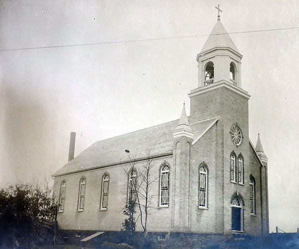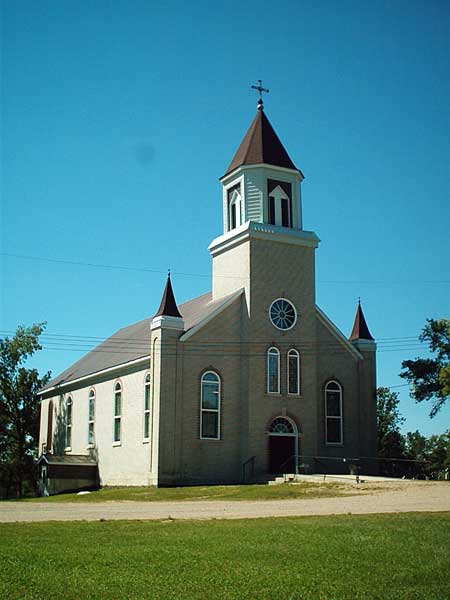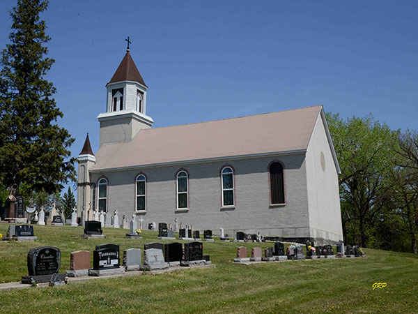 From 1892 to 1906, the church was situated in the southwest quarter of 32-5-11 west of the Principal Meridian, in what is now the Municipality of Lorne. From 1906 to 1918, it was replaced by a church at Bruxelles. Finally, in 1918, the present church was constructed at the same site as its predecessor.