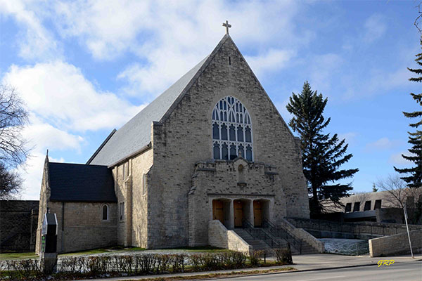 The foundation and basement for this Roman Catholic church at the intersection of Stafford Street and Corydon Avenue in Winnipeg was constructed by contractor William James Lailey in 1911. Lacking the funds to construct the entire building, the congregation covered the basement with a roof and held services there until the stone church building was completed in 1929. An opening service was held on 10 February 1929.
