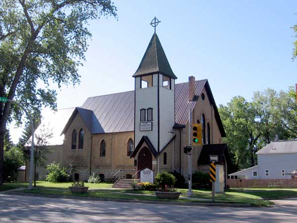 Located at the corner of Main Street East and Mountain Avenue in Neepawa, this stately brick church, on a stone foundation, was built in 1897 on a design by Winnipeg architect Samuel Frank Peters. In 2020, the church was put up for sale as its congregation began worshiping with that of the Neepawa United Church. Its rectory is located at 263 Emma Street.