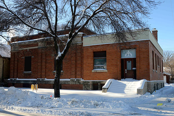 A one-storey brick building at the intersection of Rutland Street and Ness Avenue, in the St. James area of Winnipeg, was designed by local architect William Fingland. It was constructed between 1915 and 1916, by contractors Aaron Grey and Davidson using red bricks from the Leary Brickworks, for the Manitoba Telephone System at a cost of about $6,000. An addition on its south side was designed by architect John Manuel and built in 1925. The building was later used by Manitoba Hydro.