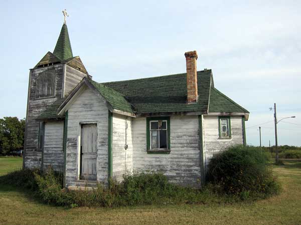 Built in 1906, this quaint little Anglican church at Kirkella, in the Rural Municipality of Wallace-Woodworth, was not in active use but retained much of its contents at the time of a 2011 site visit. The building was later moved to the Manitoba Antique Automobile Museum.