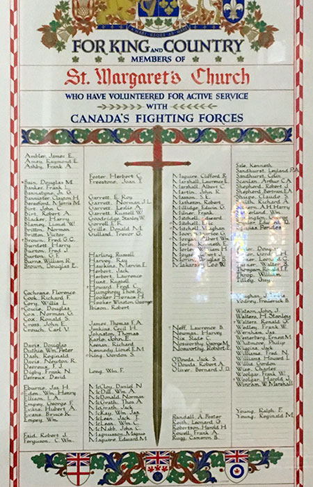 Second World War Honour Roll in St. Margaret’s Anglican Church (April 2019)