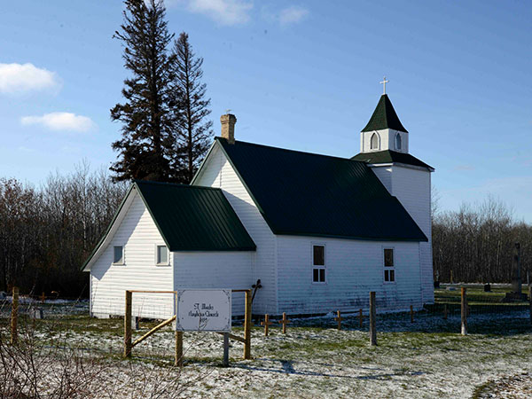 This church in the community of St. Mark’s in the Rural Municipality of Portage la Prairie was built in 1892. The sacristy was added in the 1920s. On the grounds near the church building is a war memorial commemorating people from the local area killed during military service.