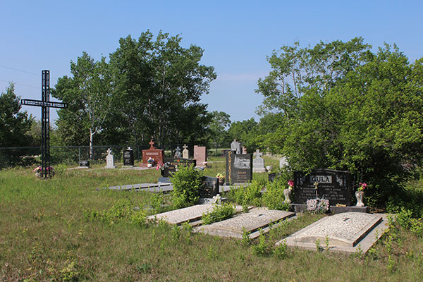This cemetery in the Rural Municipality of Armstrong was established in 1939. The associated church is situated one-third mile to the south. A solitary tombstone is located at N50.58203, W97.21673, a bit north of the cemetery.