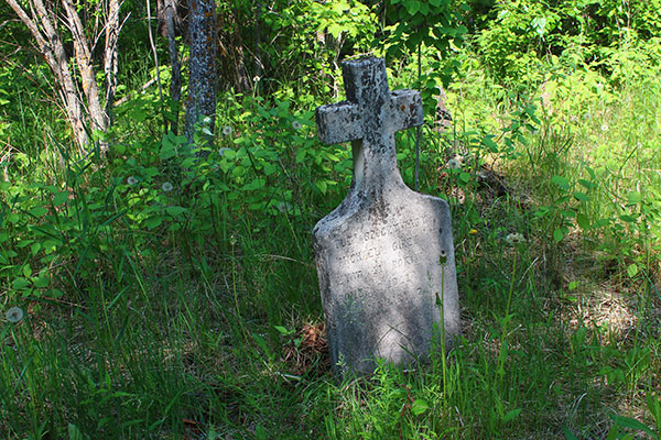 Solitary tombstone near the St. Mary Protectice Cemetery (June 2023)