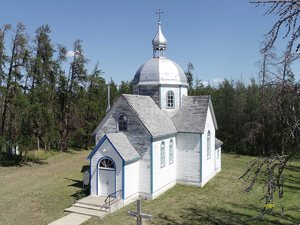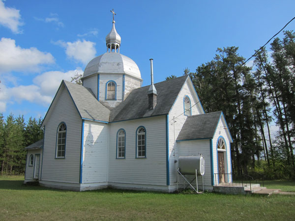 This Ukrainian Catholic church in the Rural Municipality of Alonsa was built in 1918. Its cemetery is located nearby.