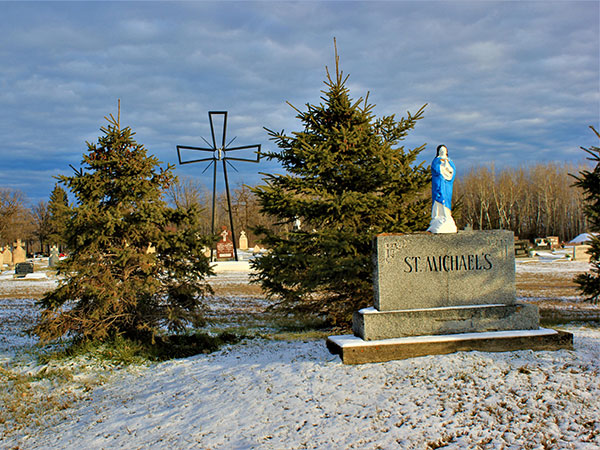 This Ukrainian Catholic cemetery is one of five situated north of Tyndall in the Rural Municipality of Brokenhead. With the exception of St. Michael’s Cemetery, the operation and maintenance of this entire site is managed by the municipality. Burials can be requested at any location on the site, regardless of religious affiliation or cultural background, and there are no longer any signs to aid in historical referencing. A sign in front of St. Michael’s provides contact details only for that portion of the cemetery.