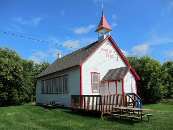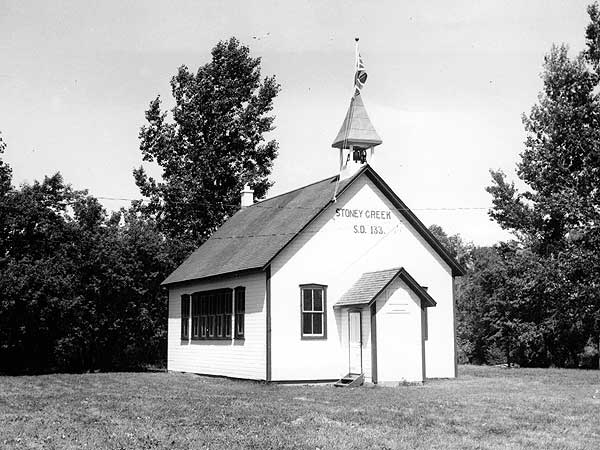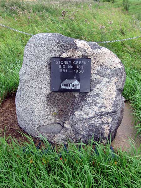 Stoney Creek School was established in December 1881 and closed in 1950, being formally consolidated into Neepawa School No. 126 in January 1967. The school building was moved to Neepawa in 1964, where it is displayed at the Lions Riverbend Park (N50.23086, W99.45844). A stone monument remains at its former site in the Municipality of North Cypress-Langford.