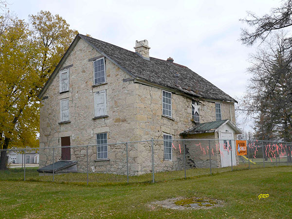 The old rectory, one of the last remaining stone houses from the Red River Settlement era, stands vacant. Its window openings are boarded over. A plaque in front of the building commemorating Boys’ School administrator Frank A. Wiens has been removed and a fence has been installed around it. The building has severe structural problems, as revealed by numerous large cracks in its exterior.