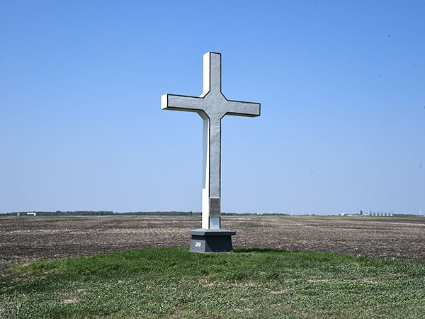 A cross in the Rural Municipality of Montcalm marks the site of St. Pie Roman Catholic Church from 1880 to 1891. In the latter year, the building was moved to Letellier by Rev. Norbert C. Jutras. On 6 July 1924, the cross was blessed by Archbishop Arthur Beliveau.