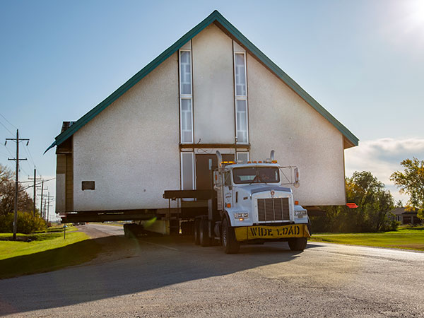 Former St. Pie Roman Catholic Church enroute to its new site (October 2019)