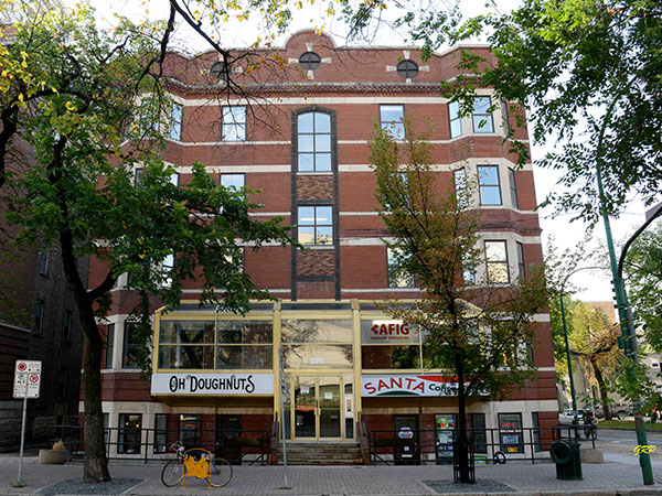 This four-storey brick apartment block on Broadway in Winnipeg was designed by Geoffrey Hitzler Walton and built in 1908 by contractor Alexander Jamieson at a cost of $100,000. The 115 by 61 foot building contained 43 apartments. Known originally as the Strathmore Apartments, it was later renamed Athol Apartments. It was rebuilt on a new foundation in 1911.
