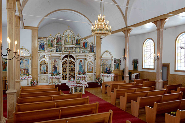 Interior of Sts. Peter and Paul Ukrainian Greek Orthodox Church in Ethelbert (February 2017)