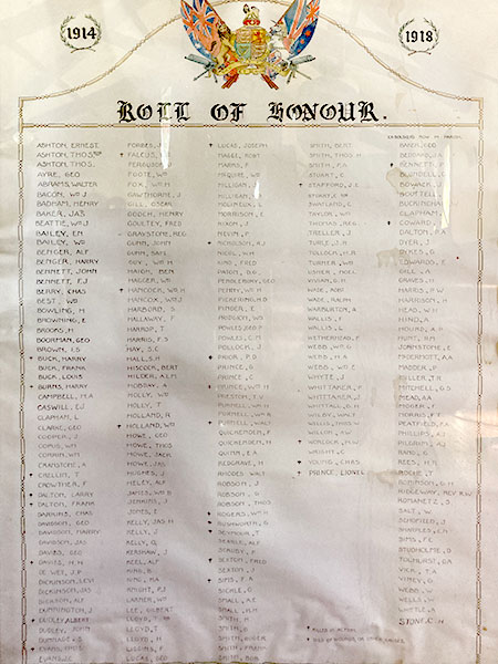Inside the churches are honour rolls for congregants who served and were killed in the First World War and Second World War.