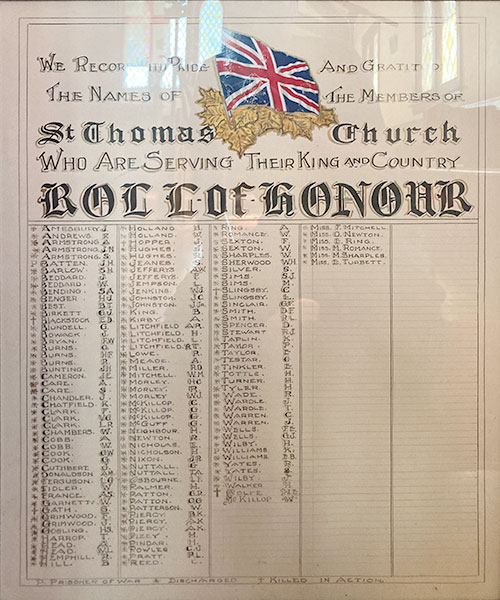 First World War honour roll in St. Thomas Anglican Church (August 2022)