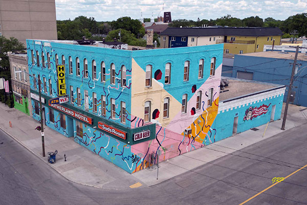 Aerial view of the Sutherland Hotel (June 2024)
