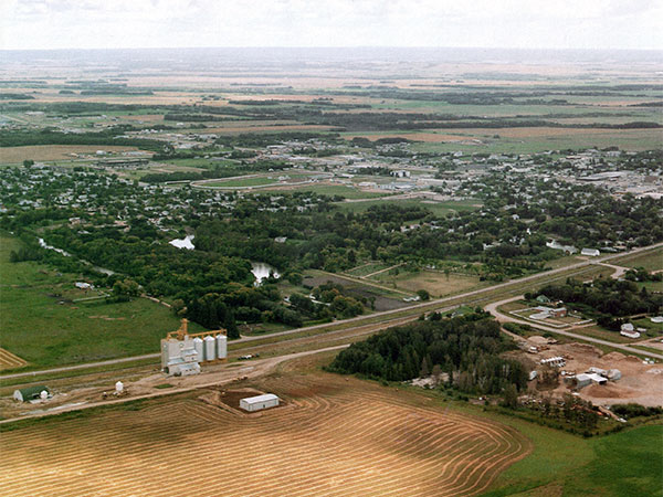 A wooden grain elevator at Swan River on the CNR Erwood Subdivision, a composite type consisting of a combined elevator and annex, was built between October 1980 and mid-summer 1981, and opened at a ceremony on 20 August 1981. Later operated by Agricore (1998-2001) and Agricore United (2001-2007), it was sold to Cargill Grain in 2007. The facility was closed and demolished in 2015.