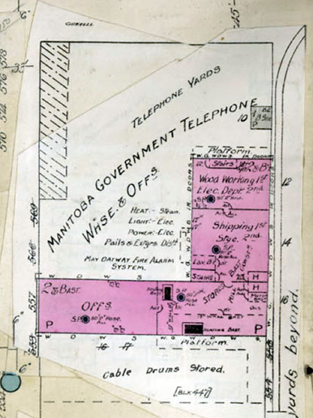 Fire insurance map showing Manitoba Government Telephones Warehouse (May 1914)