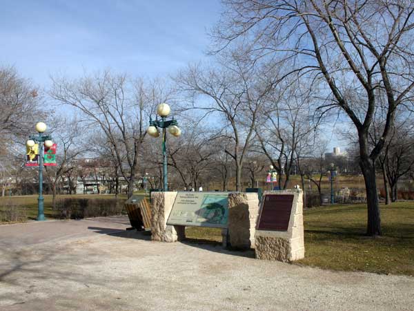 The site has been a centre for trade and exploration, a focus for the first permanent European settlement in the Canadian West, cradle of the province of Manitoba, nucleus of the City of Winnipeg, a hub of rail and road transport, and the gateway for the settlement of the prairies. In 1974, a plaque was placed here by the Historic Sites and Monuments Board of Canada.