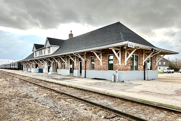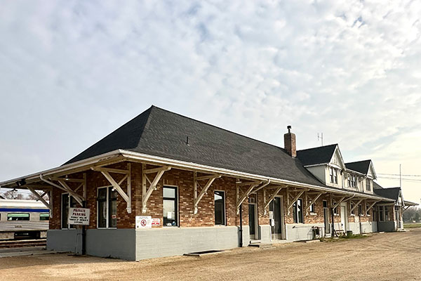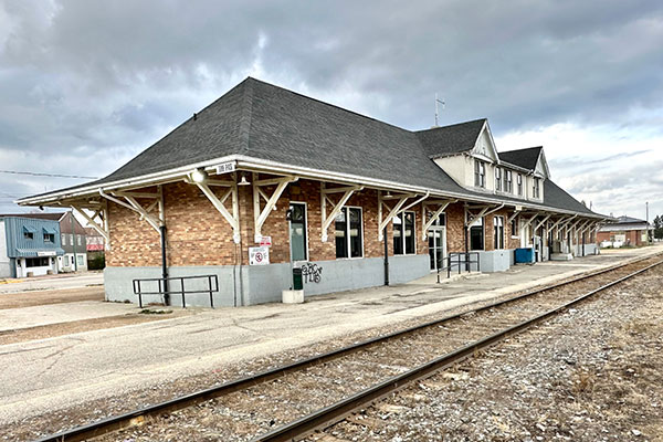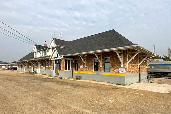 Canadian National Railway station at The Pas (October 2023)