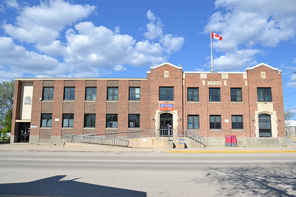 The two-storey brick postal building on Fischer Avenue in The Pas was constructed in 1932.