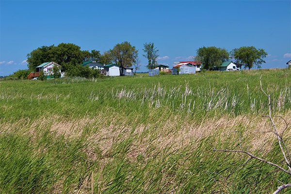 Some of these buildings in this aggregation on the south side of Delta Marsh, in the Rural Municipality of Portage la Prairie, date to the 1920s. It is alleged the aggregation occurred when a game warden tired of walking great distances to check bag limits demanded that the hunters move their buildings close together. Today, many of those original buildings remain, some largely intact and other heavily modified. A few newer buildings have been added.