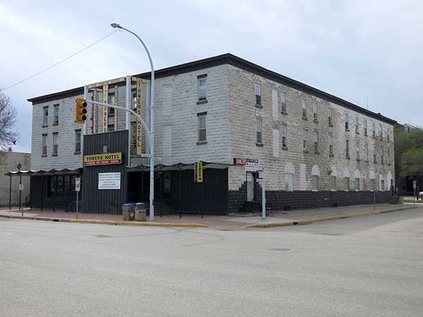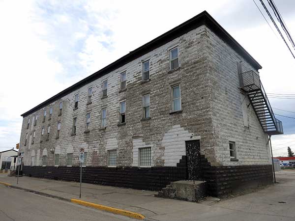 This three-storey building in Dauphin, constructed of distinctive concrete blocks, was destroyed in a suspected arson fire on 18 September 2014. Known originally as the Canadian Northern Hotel, it was constructed by William Whitmore, who homesteaded in the area in 1886. The building was purchased around 1911 by rancher and hotelier Daniel Hamilton, who renamed it the Hamilton Hotel and operated it until his death. In 1960, it was purchased by John Kiernicki and renamed the Towers Hotel.