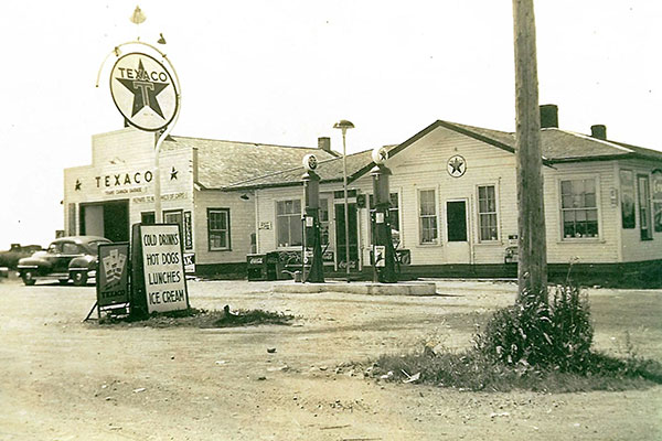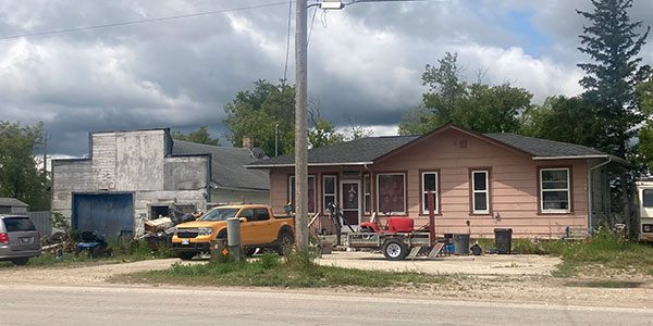 This one-storey wood frame building was built in the early 1930s by proprietor John Buss as a service station and garage catering primarily to traffic on the Highway. The facility had two gasoline pumps that sold North Star brand gasoline (switched later to McColl-Frontenac brand) while a single service bay was located in an adjacent building.