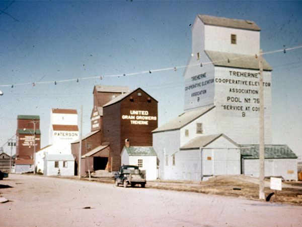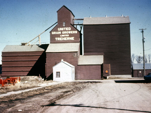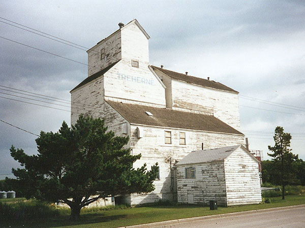 A wooden grain elevator at Treherne, on the CPR Glenboro Subdivision in what is now the Municipality of Norfolk Treherne, was built in 1927 by United Grain Growers. An annex was added to it in 1959. Traded to Manitoba Pool in 1990, becoming its Pool B elevator, it was later closed and demolished in 2002.