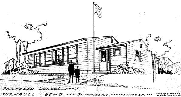 The Turnbull Bend School District was established in January 1952 and a one-room schoolhouse was built on Lots 76-79 in the Parish of St. Norbert, at a cost of around $12,000. Named for businessman Thomas Turnbull, it opened on 31 January 1953 by the Minister of Education W. C. Miller. Early class sizes were 20 to 30 students, lead by a single teacher. In January 1959, the district was reorganized into the Fort Garry Municipal School Division No. 2361, within which junior high and high school grades were provided for district pupils above grade six. The school closed in summer 1963 and the building was probably demolished during construction of a nearby control structure for the Red River Floodway.