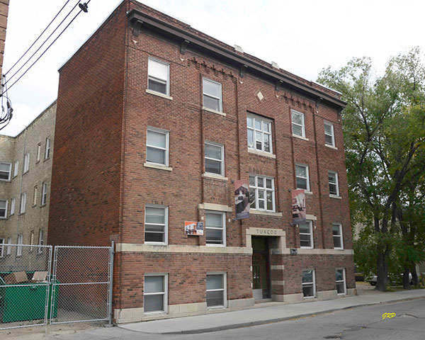 This three-storey brick building on Langside Street in Winnipeg was designed and built in 1927 by the Moxam Construction Company at a cost of about $50,000. Measuring 49 feet by 91 feet, the building contained 18 residential apartments of three, four, or five rooms. The facade was of red bricks with stone trim and interior woodwork was of oak. It was first block in the city to have “dinettes”, a combination kitchen and dining room. The property was managed from the beginning by the Smith Agency.