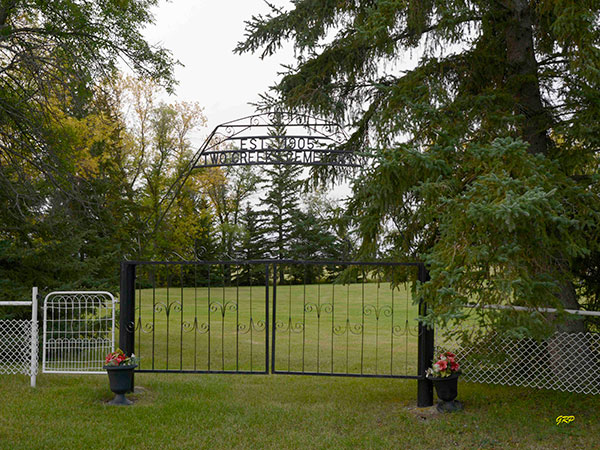 Inside this cemetery in the Rural Municipality of Wallace-Woodworth, established in 1905, is a monument commemorating the pioneers who settled the Two Creeks district between 1880 and 1885.
