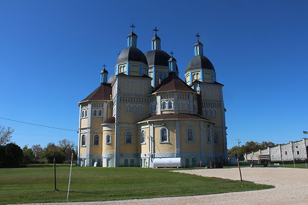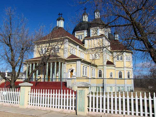 Construction of this Ukrainian Catholic church in the Rural Municipality of Springfield began in 1930, designed by priest-architect Philip Ruh, and it was consecreated 22 years later. Reverend Ruh worked alongside his congregation in building the largest of his remaining creations in Manitoba. He also supervised construction of the adjacent Grotto, a representation in concrete of the Grotto at Lourdes, France. Ruh died before its completion and is buried in a nearby cemetery. The church, a nationally and provincially designated historic site, was renovated as part of the Manitoba Prairie Churches Project.
