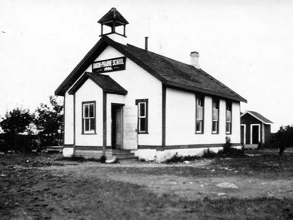 The Union Prairie School District was formally established in May 1903 and a school building was erected on the southeast quarter of 14-18-1 west of the Principal Meridian, in the Rural Municipality of Armstrong. In 1936, it became part of the Armstrong Municipal School District No. 1842. The school remained open until it became part of the Lakeshore School Division. The former school building was moved to Inwood where it was used as a museum. Nothing remains at the former school site except a fringe of trees from its shelterbelt.