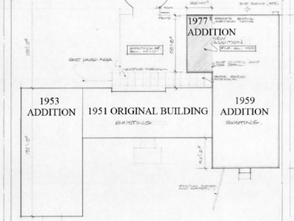 Upon opening, the building’s capacity was unable to meet enrollment demands, and expansion with a new wing containing seven classrooms began almost immediately. The new section was opened in December 1953, before which the school employed staggered hours and off-site classes in the Windsor and Glenwood Community Clubs to accommodate the large student body. A further expansion occurred in 1959 with the addition of a two-storey section with two-thirds of a gymnasium, also designed by Smith Carter and Katelnikoff.