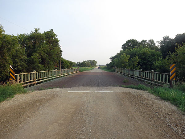 A small steel beam bridge spanning the Vermillion River in the Rural Municipality of Dauphin was constructed in the mid-20th century.
