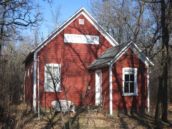 The former Victory School building, now a private museum at N49.48219, W98.40987 (October 2013)