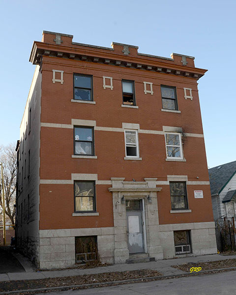 This three-storey brick and stone block on Young Street in Winnipeg, measuring 52 feet by 33 feet, was designed and built in 1913 by Jonas Johannesson at a cost of about $35,000. The building contained 14 apartments in its original configuration.
