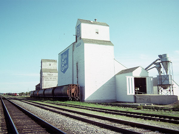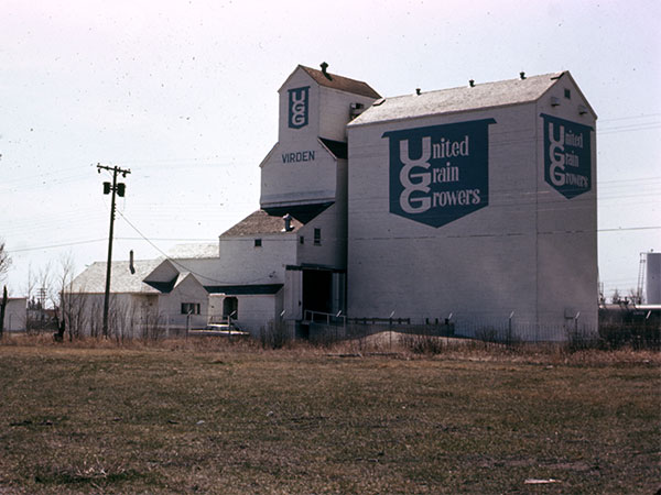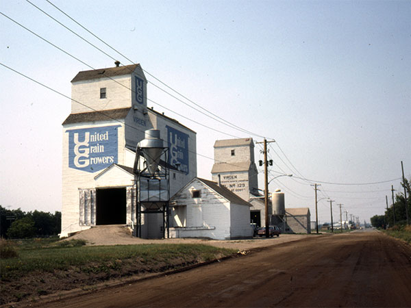 A wooden grain elevator in Virden, on the CPR Broadview Subdivision, was operated by United Grain Growers.