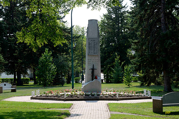 A monument in Virden’s Victoria Park was erected to honour local people who served and died during military service. The park was created in 1897 and named by Mrs. Jeanne Ella Meek (1851-1933), wife of the Mayor, in commemoration of Queen Victoria.