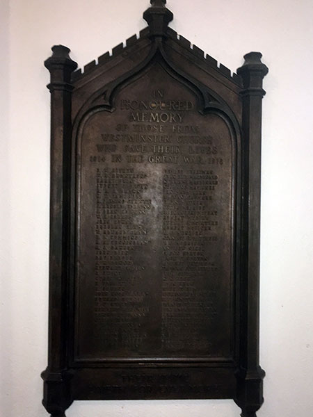 Second of two original First World War Honour Rolls at Westminster United (April 2019)