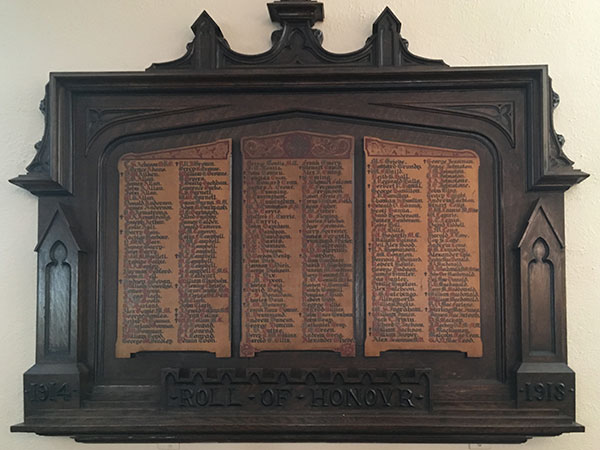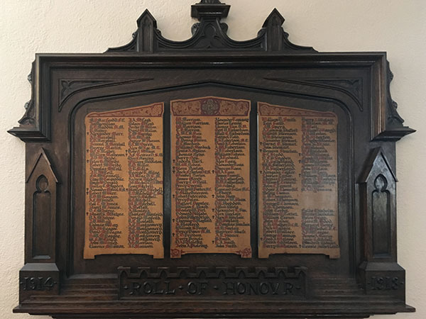 One of two original First World War Honour Rolls at Westminster United (April 2019)